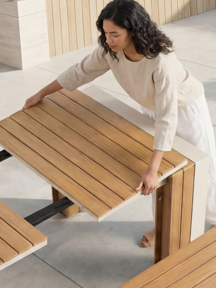 The world's only extendable patio table. A 6-in-1 outdoor dining set that expands to over 9' long. All-weather resistant and made for easy storage, outdoor living has never been easier.