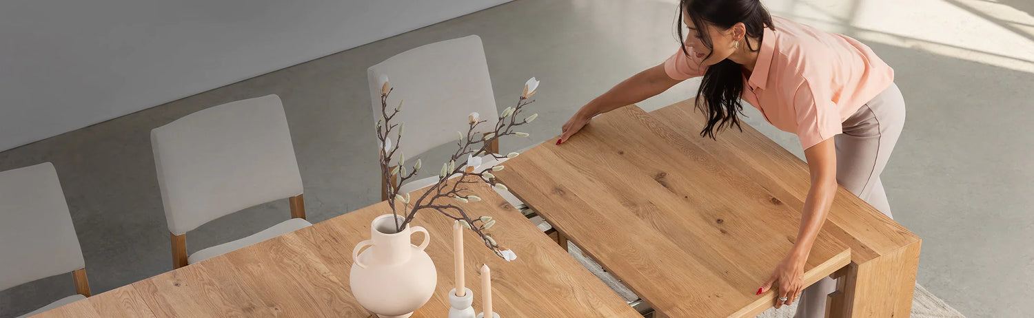 Transformer Dining Set furniture is protected by a 1-year limited warranty as well as a lifetime warranty on the extension mechanism. For more details, please consult our warranty page.